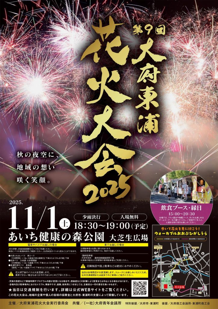 当社は、2025年11月1日(土)に開催された「第9回 大府東浦花火大会」(会場:あいち健康の森公園 大芝生広場)に、地域企業の一員として協賛いたしました。