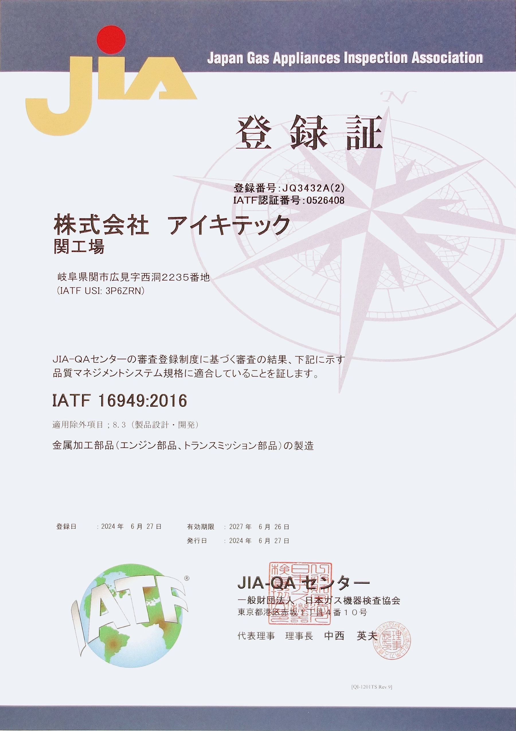 | IATF16949 | 〇 | 〇 | - | 〇 | 〇 | 〇 |