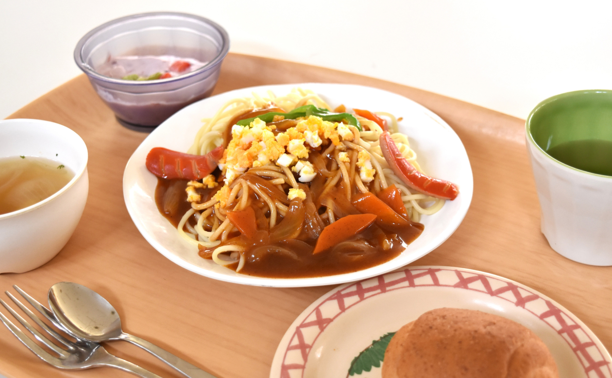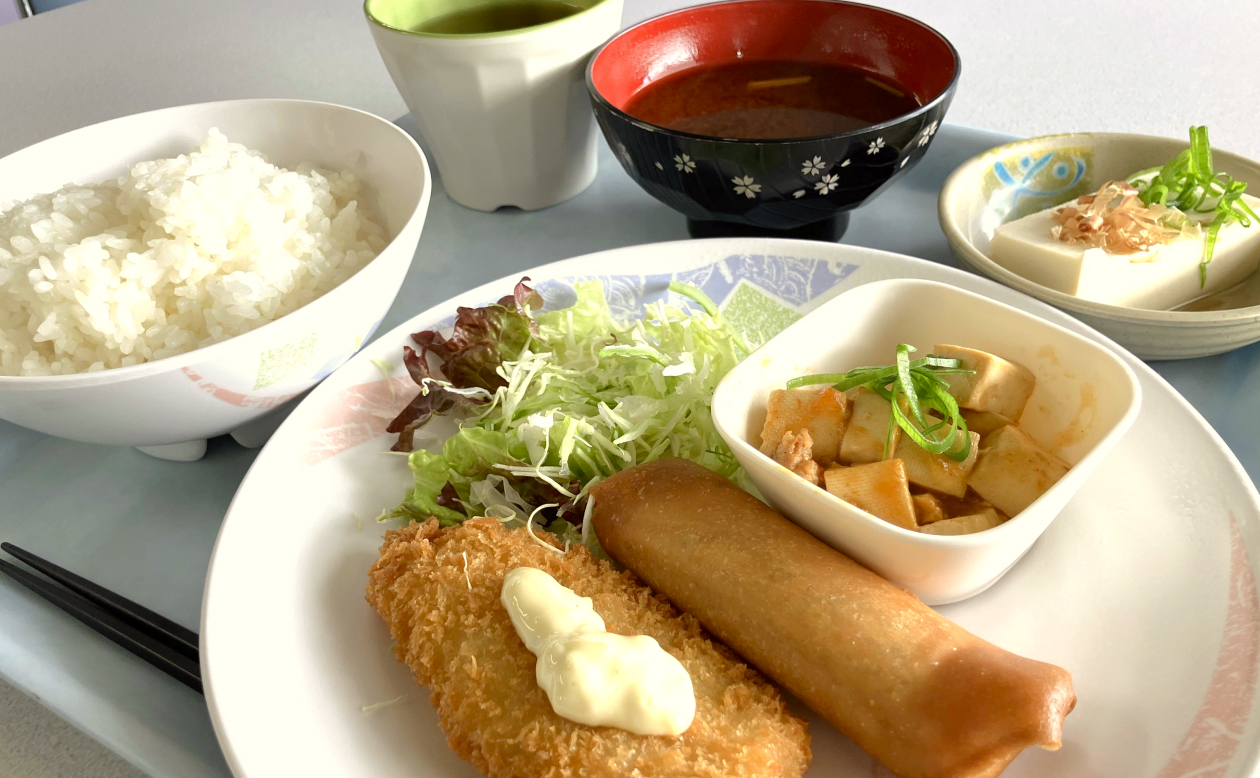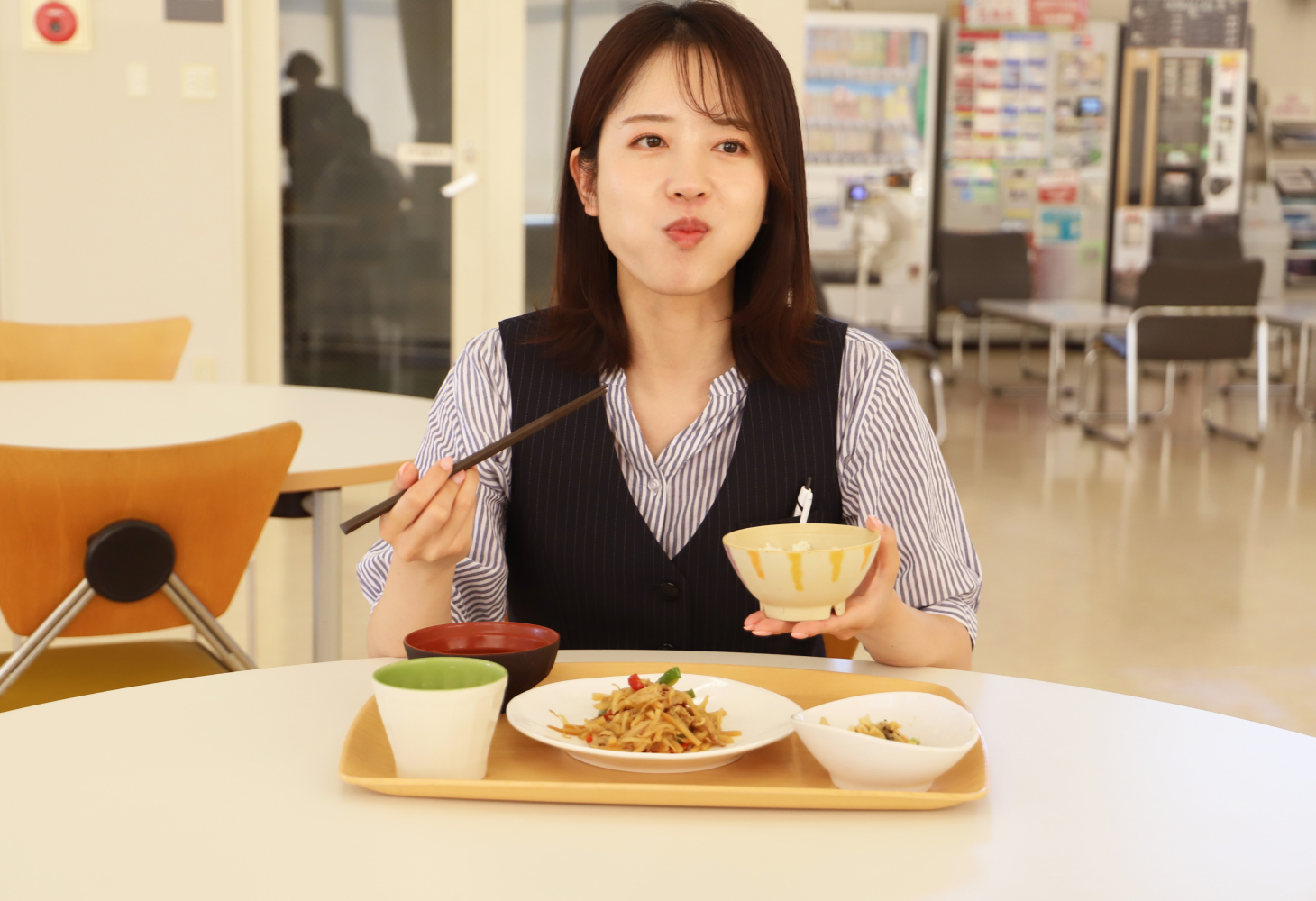社員食堂では、栄養満点で豊富な種類のランチを毎日無料で提供しています。