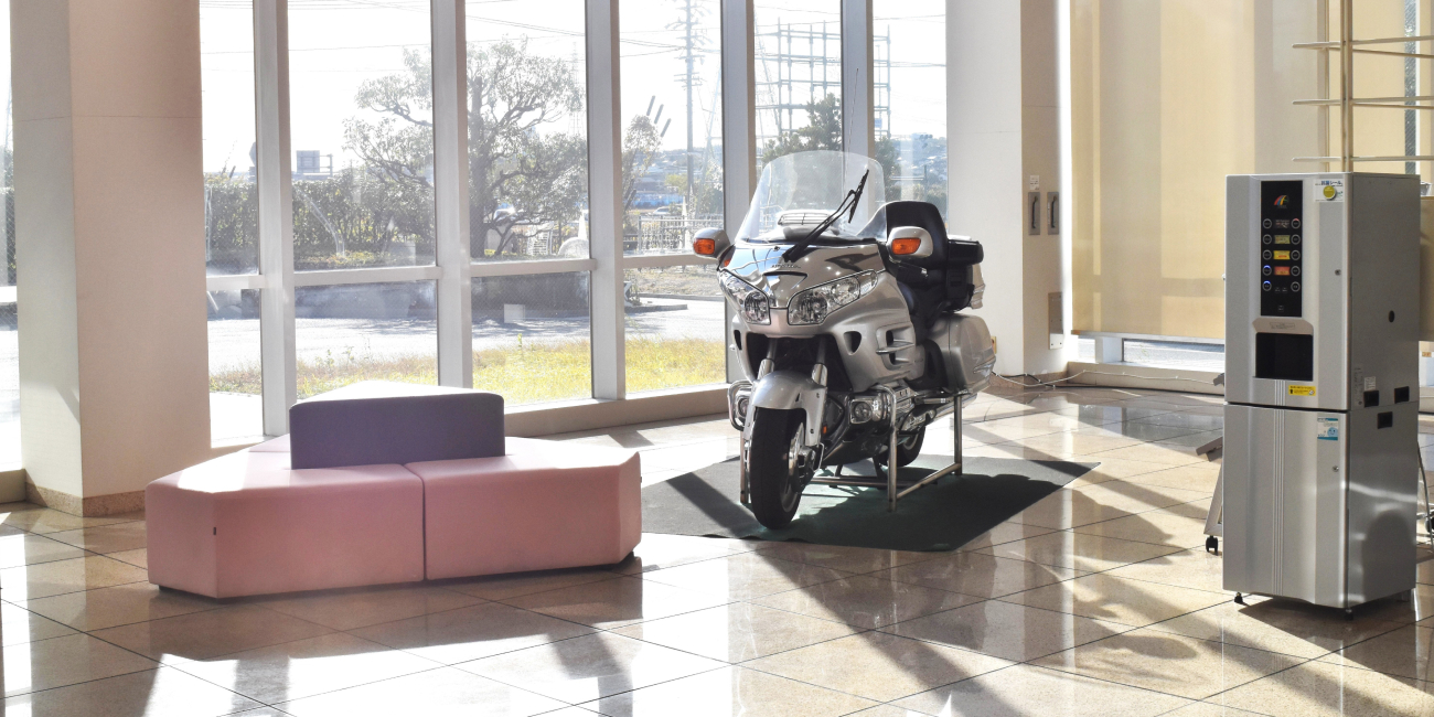 エントランスには、広々とした空間に当社で製造している部品や、