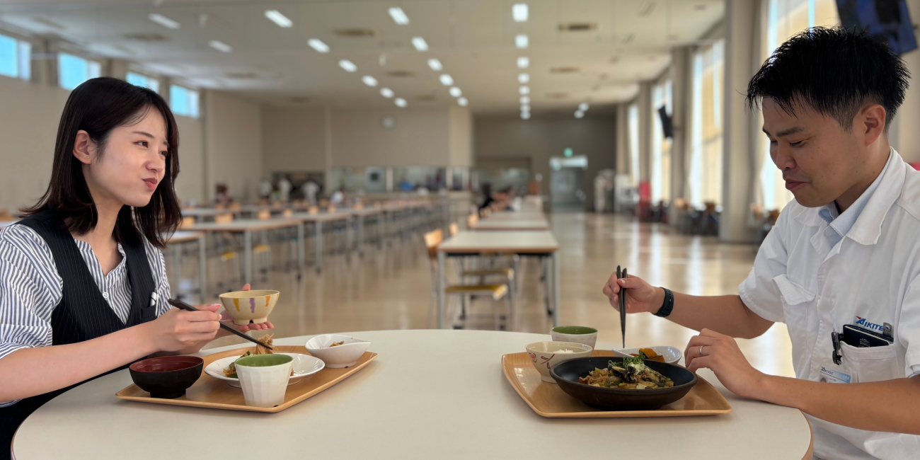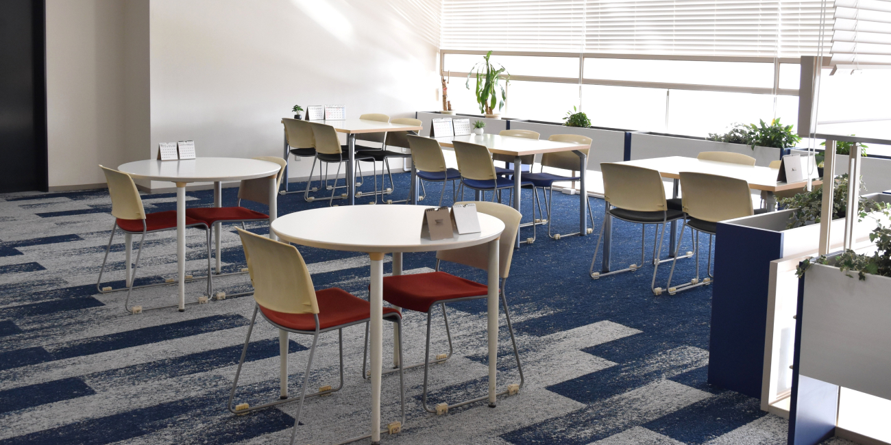 広々とした食堂では、社員全員が毎日無料で食事を楽しむことができます。栄養バランスを考えた温かい